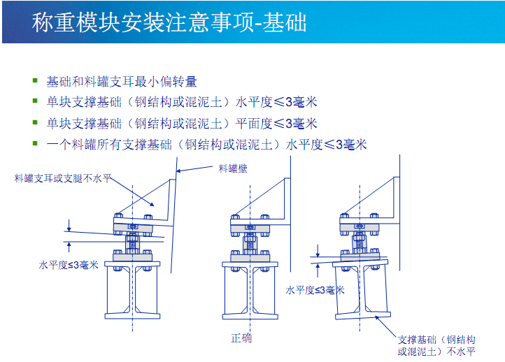 MultiMount稱(chēng)重模塊的頂板在所有方向上都可自由浮動(dòng)±5mm的平移,因此模塊的安裝方向并不苛刻。整個(gè)料罐在兩個(gè)稱(chēng)重模塊之間可以熱脹冷縮位移總計(jì)10mm,這就為熱脹冷縮提供了充足的余量。