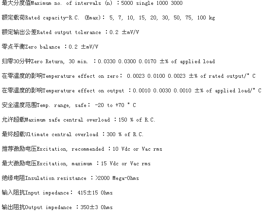 美國特迪亞-亨特利Tedea-Huntleigh 1040-7kg稱重傳感器參數(shù)資料: