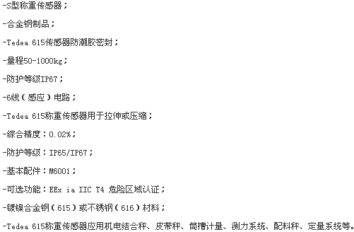 美國威世特迪亞vishay tedea 615-500kg稱重傳感器參數: