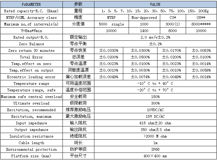 特迪亞1042-1Kg稱重傳感器產(chǎn)品參數(shù)表: