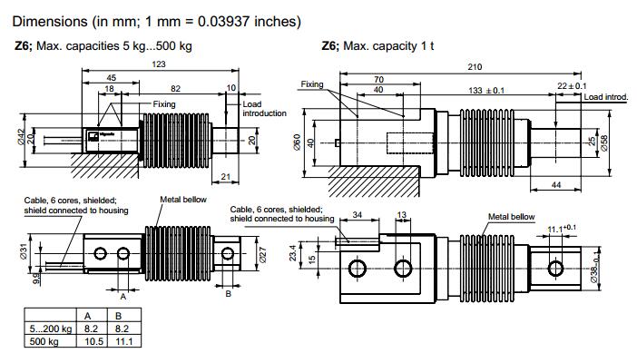 防爆型號可選,按照 ATEX95 標準額定負載: 5 kg / 10 kg /20 kg / 50 kg / 100 kg / 200 kg / 500 kg / 1 t