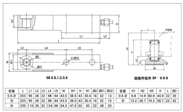 SBH-3T (梅特勒托利多)彎曲梁稱重傳感器,稱重容量3t,承載孔為盲孔,5M電纜