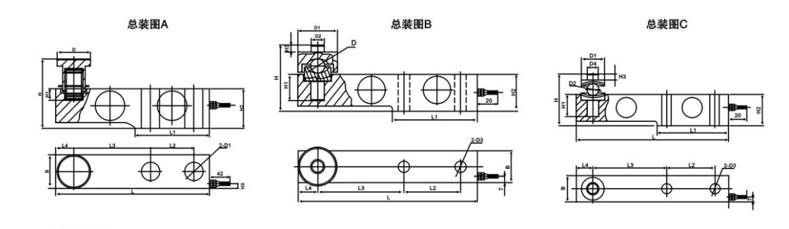 2、懸臂梁稱重傳感器在小地磅和平臺秤上廣泛的應用,一般采用三只傳感器或者四只傳感器為一組。通過信和調理器把多只傳