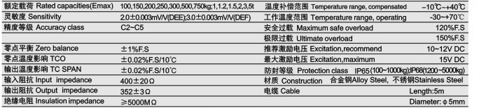 (5)靈敏度:2.0±0.002mV/V,3.0±0.002mV/V