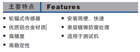 輪輻式傳感器;推薦合金鋼材質;高精度;高穩(wěn)定性;安裝簡便、快速;表層鍍鎳防腐處理;適用于測試機