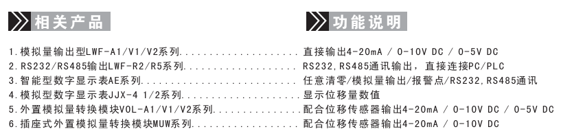 電流信號(hào)輸出(4-20MA)型號(hào)如下;