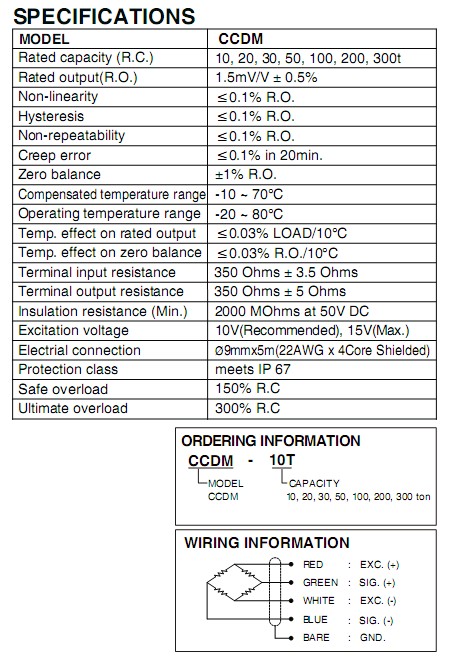 韓國Bongshin CCDM-10T稱重傳感器主要特性: