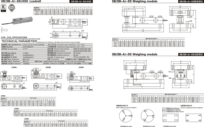 美國(guó)SUNCELLS SB-5T稱重傳感器中文參數(shù):