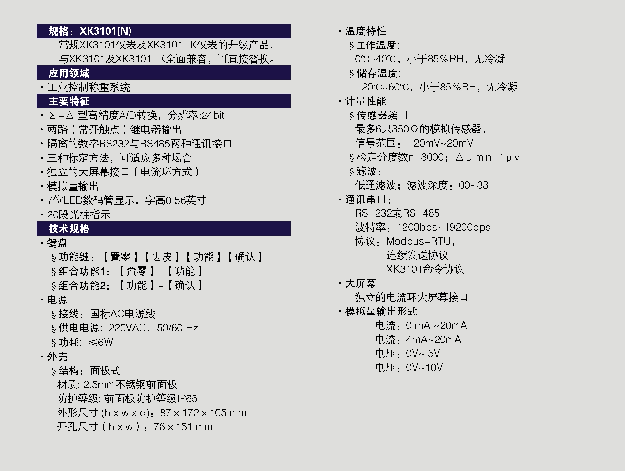 美國(guó)SUNCELLS XK3101N電子稱重儀表規(guī)格作用: