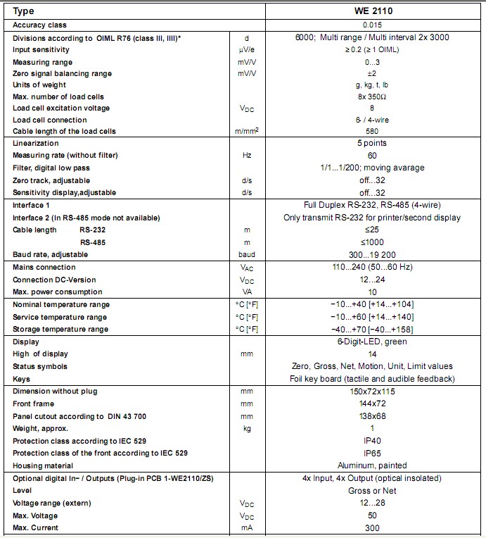 WE2110 - 數字稱重儀表