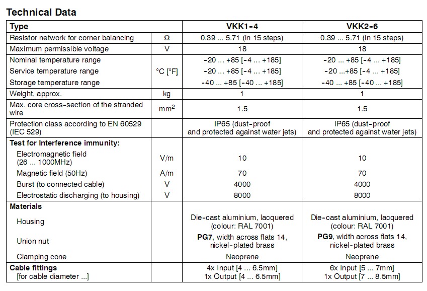 loadcells(onlyVKK2--6) ProtectionclassIP65