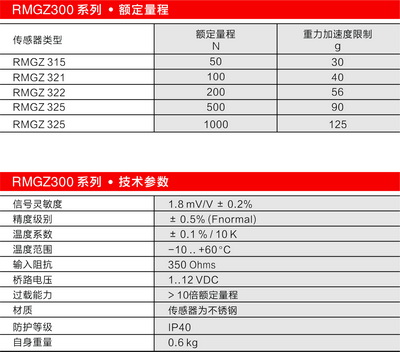 瑞士FMS RMGZ300張力傳感器技術參數:
