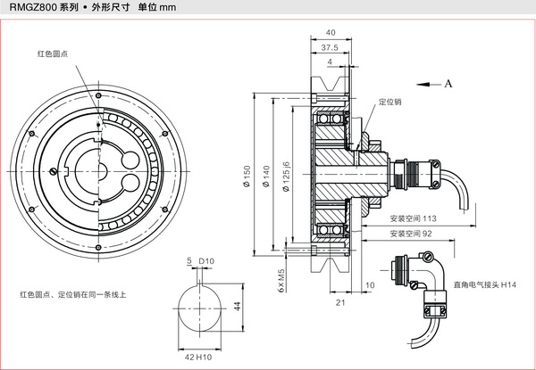 RMGZ800輥輪式張力傳感器,外蓋套在具有自潤滑功能的深溝球軸承上,用戶自備的線輪安裝在外殼上。安裝傳感器時需要在設備上準備一個帶有鍵槽的安裝孔,鍵槽用于固定防止傳感器轉動的定位銷。定位起到防止傳感器受扭力的作用,定位銷的位置取決于力的方向及機身上的紅色標記點位置。