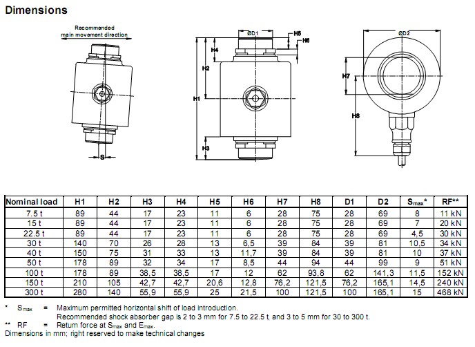 這款測力傳感器開發(fā)用 于大容量集裝箱和料倉稱重系統(tǒng)。也可用于靜態(tài)力值測量應用。型號 F1270 系列的額定負載為 7.5 t 到 300 t。雙側(cè)受力點采用球面結(jié)構(gòu)的搖臂銷設計是這款測力傳感器的獨特特征。