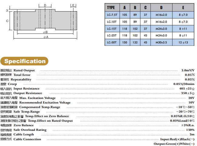 本LC型荷重元( L Load cell)系最常用的地磅荷重元,由於大面積穩固的底座以及極低的高度,並配上高敏度剪刀感應結構及完全密封保護,使荷重感應達到最高之精度與敏感度,因此特別適用於地磅、精確重量測及力量測試上,具以下之特點: