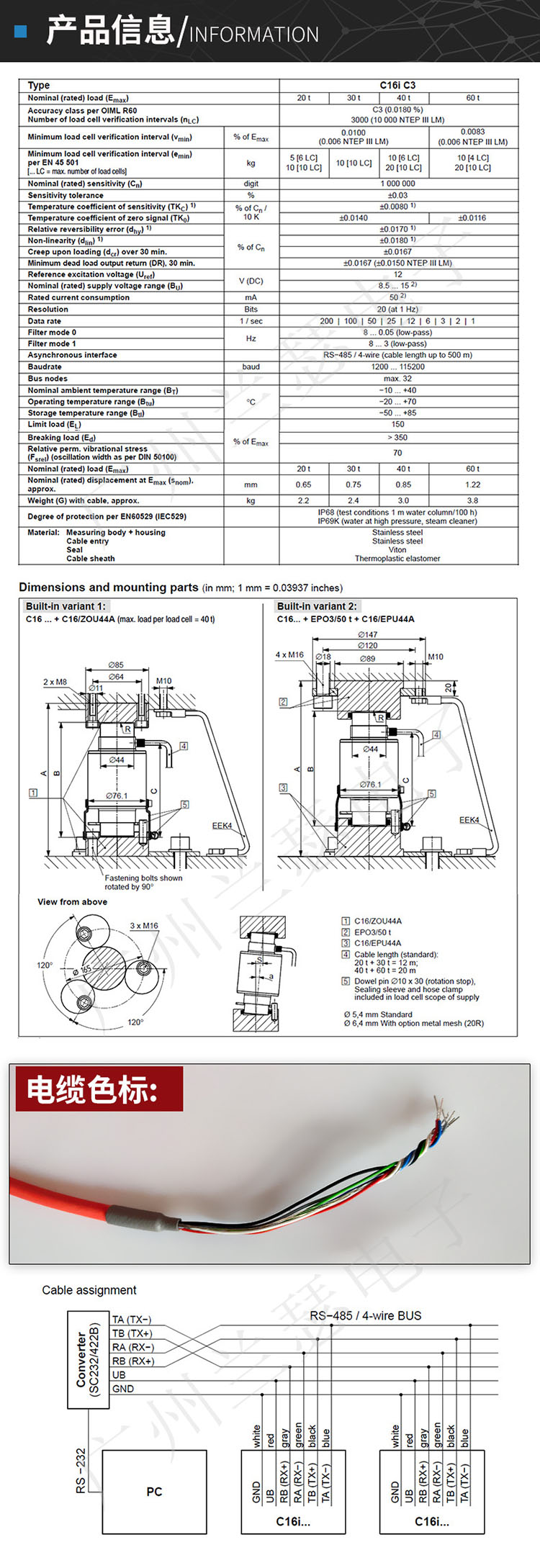 如果您想獲得C16iC3/20T稱重傳感器的詳細信息,圖片,技術參數,價格,貨期,請在百度搜索廣州蘭瑟電子科技有限公司找華南區銷售經理楊先生。