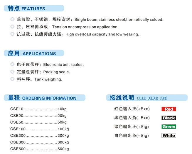 CSE傳感器,志美CHIMEI CSE稱重傳感器規格: