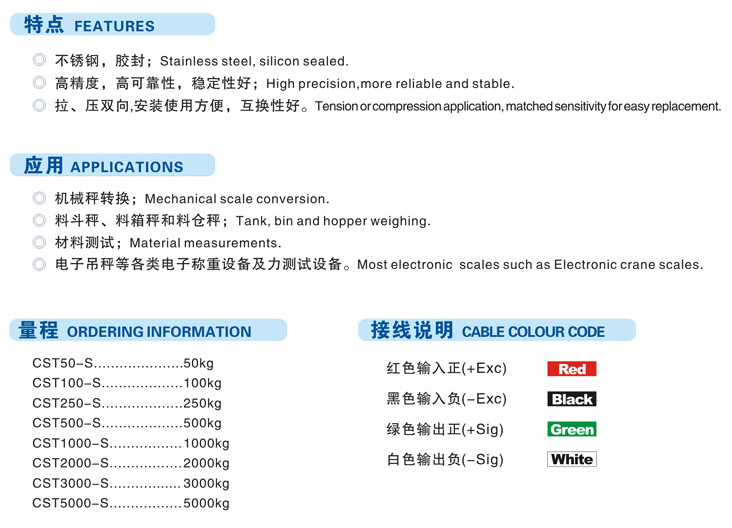 CST-S傳感器,志美CHIMEI CST-S稱重傳感器規格: