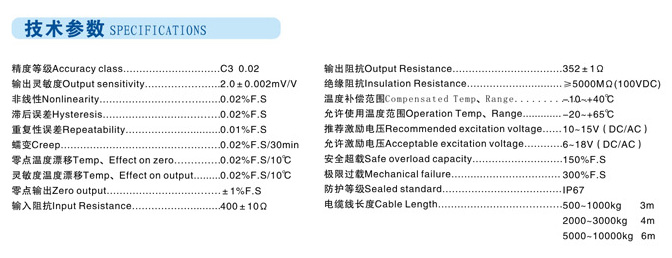 CSB-A傳感器,志美CHIMEI CSB-A稱重傳感器規格: