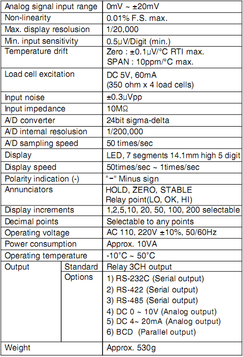 韓國(guó)Bongshin BS-205稱重儀表技術(shù)指標(biāo)
