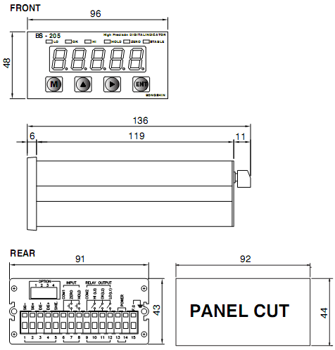 韓國(guó)Bongshin BS-205稱重顯示儀表安裝尺寸