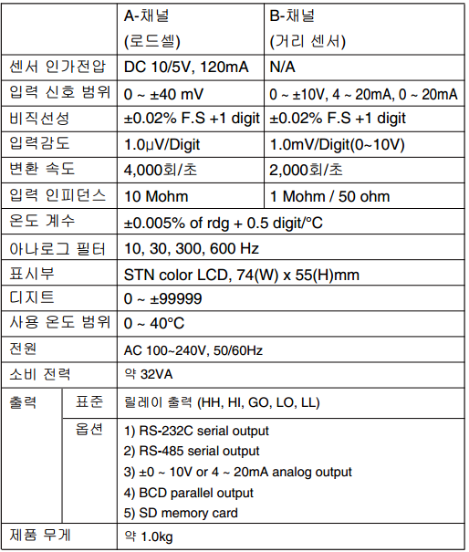 韓國Bongshin BS-G1000稱重儀表技術(shù)指標