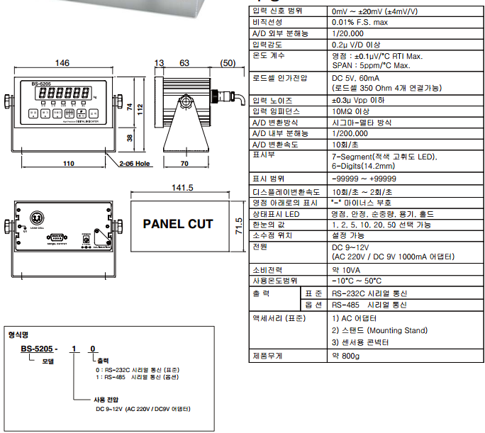 韓國Bongshin BS-5205稱重顯示儀表安裝尺寸
