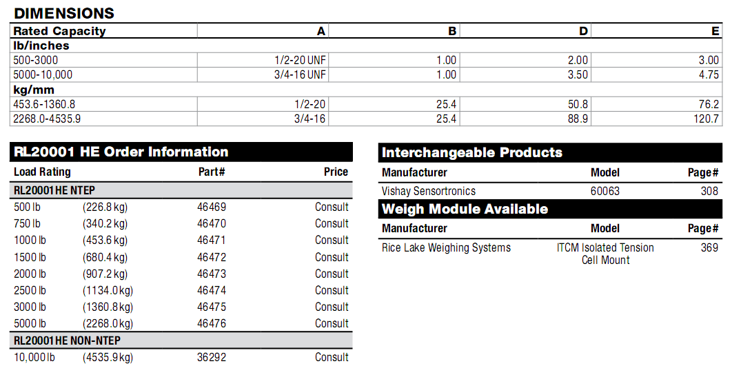 RL20001HE :RL20001HE-750lb RL20001HE-1Klb RL20001HE-1.5Klb RL20001HE-2Klb RL20001HE-2.5Klb RL20001HE-3Klb RL20001HE-5Klb RL20001HE-10Klb;