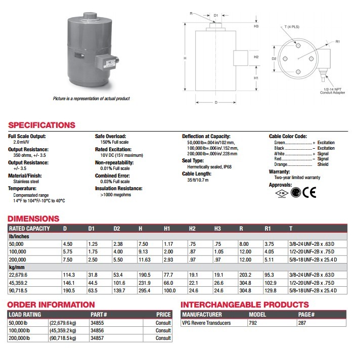 RL8C2P1SS-50Klb,RL8C2P1SS-100Klb,RL8C2P1SS-200Klb