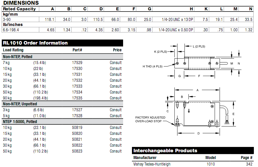 美國RICELAKE RL1010稱重傳感器規(guī)格