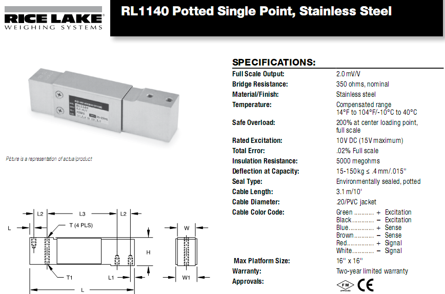 RICE LAKE RL1140稱重傳感器 直接安裝一個稱重平臺,掛秤等低容量的束應用而設計。不銹鋼結構和獨特的耐高濕保護涂層提供長期的穩定性,即使在惡劣的環境中