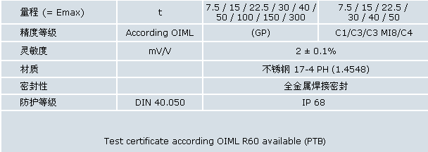 FLINTEC富林泰克RC3稱重傳感器技術(shù)參數(shù)