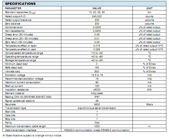 美國威世世銓celtron MDBD-20T稱重傳感器技術(shù)參數(shù):