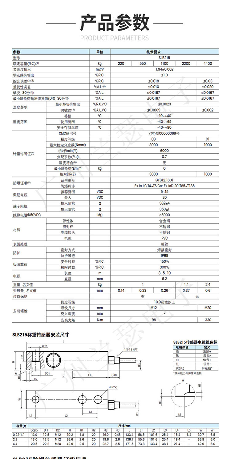 產(chǎn)品型號:SLB215稱重傳感器
