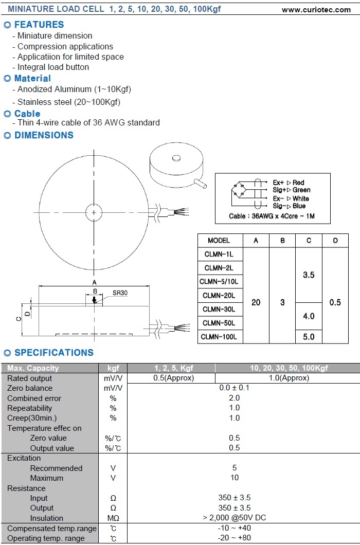 量程:1kg/2kg/5kg/10kg/20kg/50kg/100kgf采用合金鋼材質小圓形測力傳感器,適用于機械按鈕,開關等測力場所。