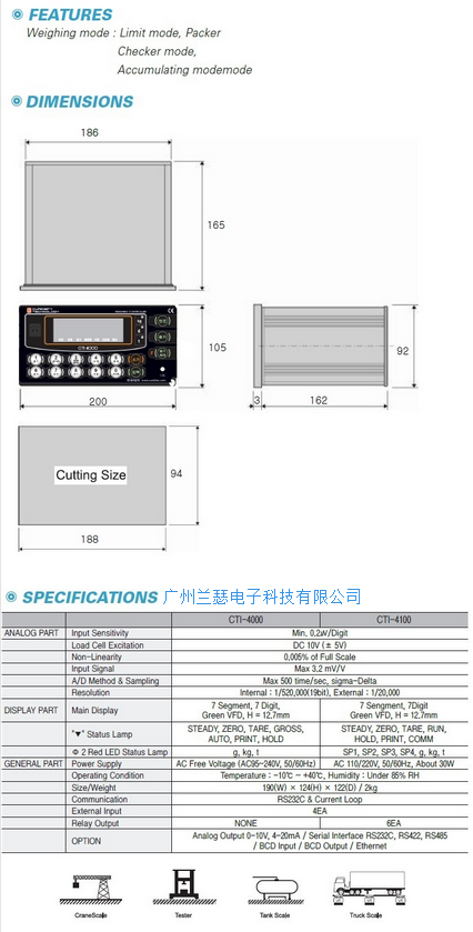 韓國(guó)CURIOSITY CTI-4100稱重顯示控制儀表產(chǎn)品參數(shù)尺寸