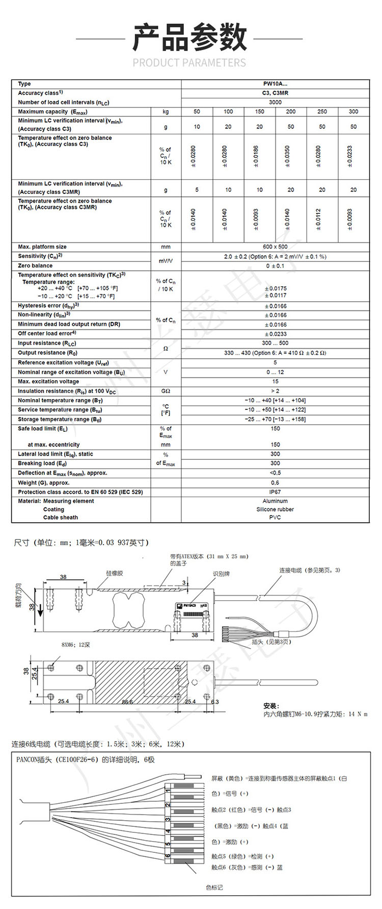 德國HBM PW10AC3稱重傳感器產品參數: