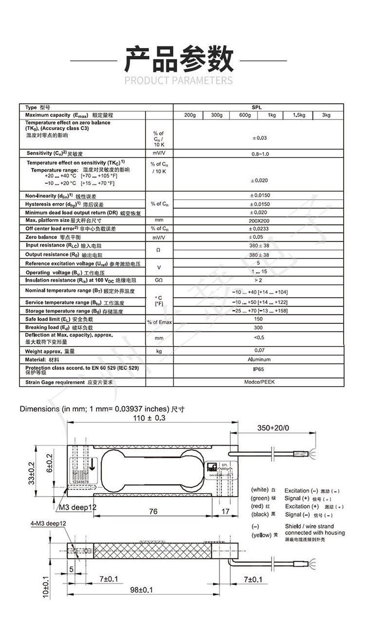 德國HBM SPL稱重傳感器參數: