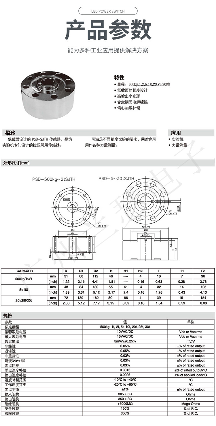 美國(guó)Celtron PSD-5tSJTH稱(chēng)重傳感器產(chǎn)品參數(shù):