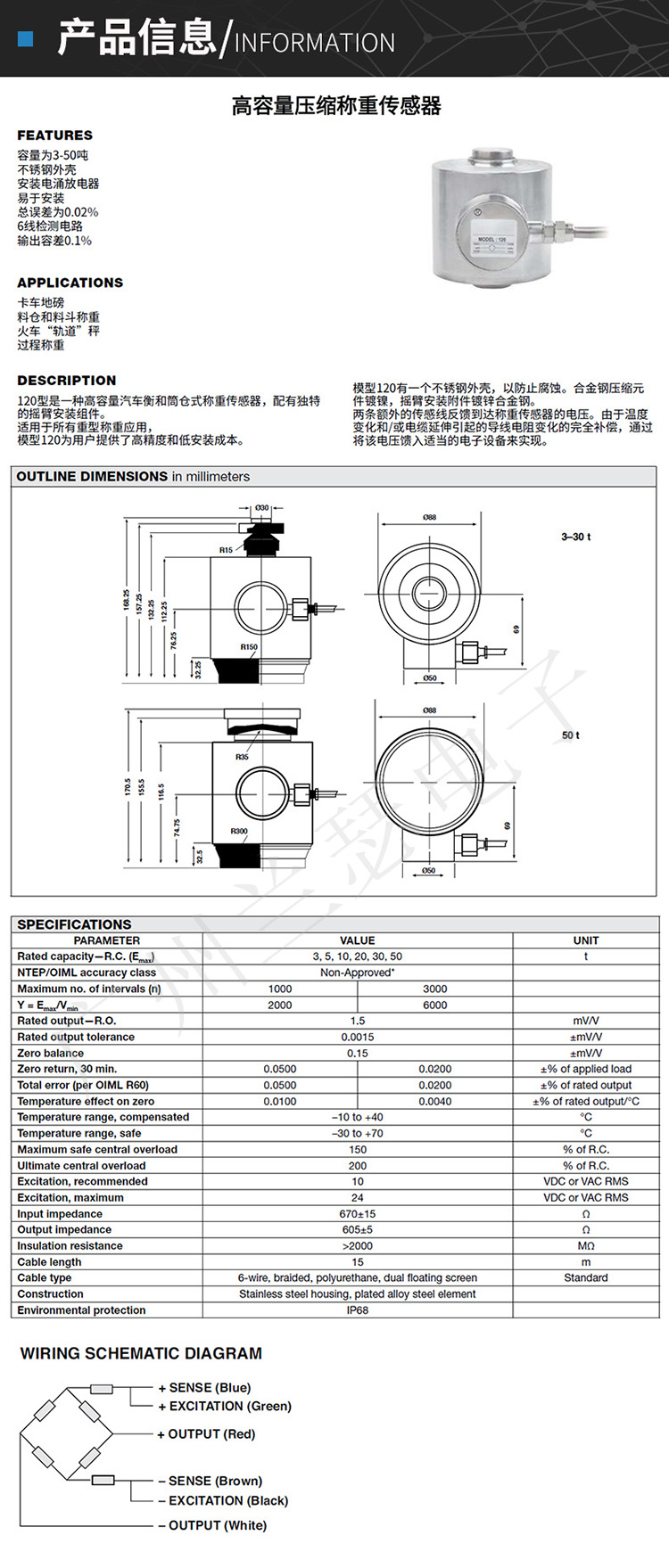 | 120-30T稱重傳感器,美國特迪亞亨特利 120-30T傳感器 |