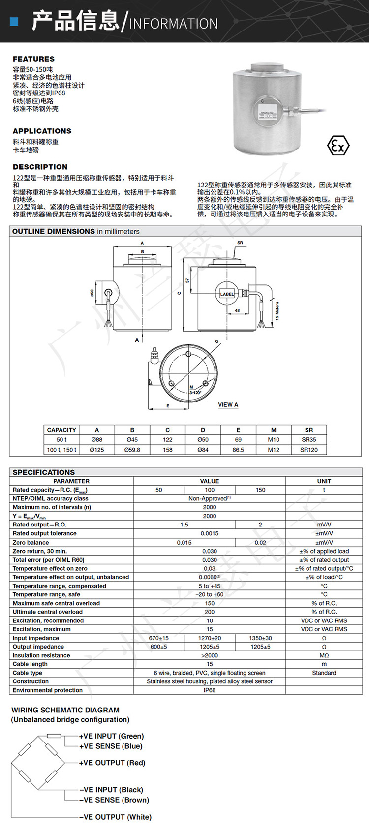| 122-50T 122-150T稱重傳感器,美國tedea 122柱式傳感器 |