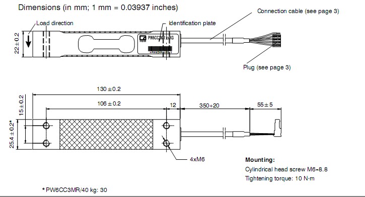 PW6CC3/10KG傳感器和PW2C 有一致的性能, 區別在于: