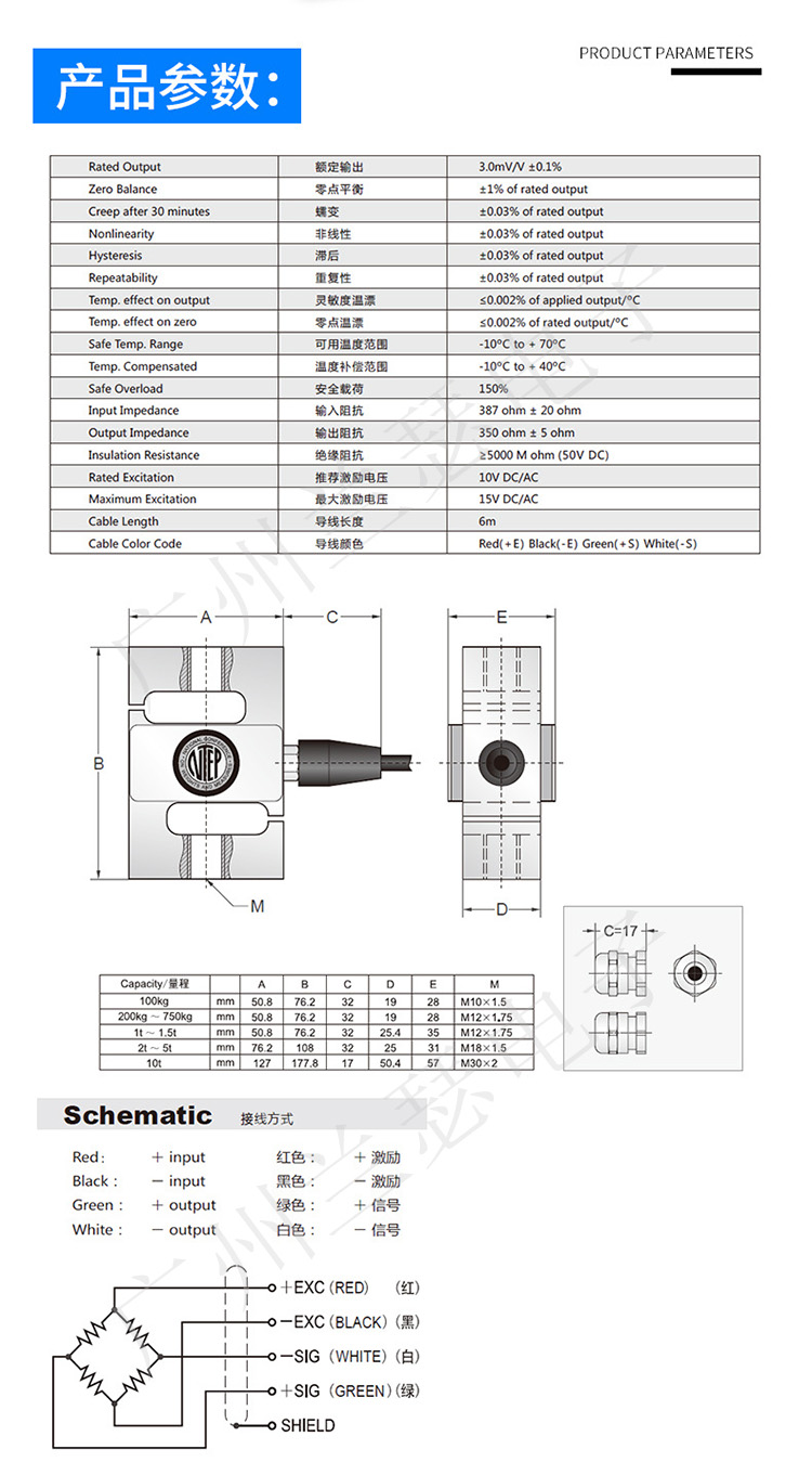 美國Transcell BSS-500KG稱重傳感器產(chǎn)品參數(shù):