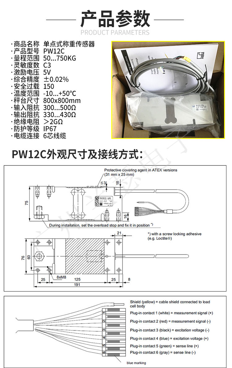 PW12CC3/100KG稱重傳感器最大秤臺面積 800 x 800 mm. 標(biāo)準(zhǔn)電纜為3 m長屏蔽6線電纜; 同樣,我們還提供 更長的電纜長度 (最大 12 m), 可調(diào)整的輸出或更小的檢定分度(vmin),另外所有的PW10A 都提供防爆型號 (按照 ATEX 95 (Zone 1, 21; Zone 2,22).
