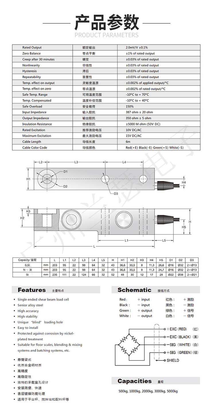 產品類型:懸臂梁式稱重傳感器