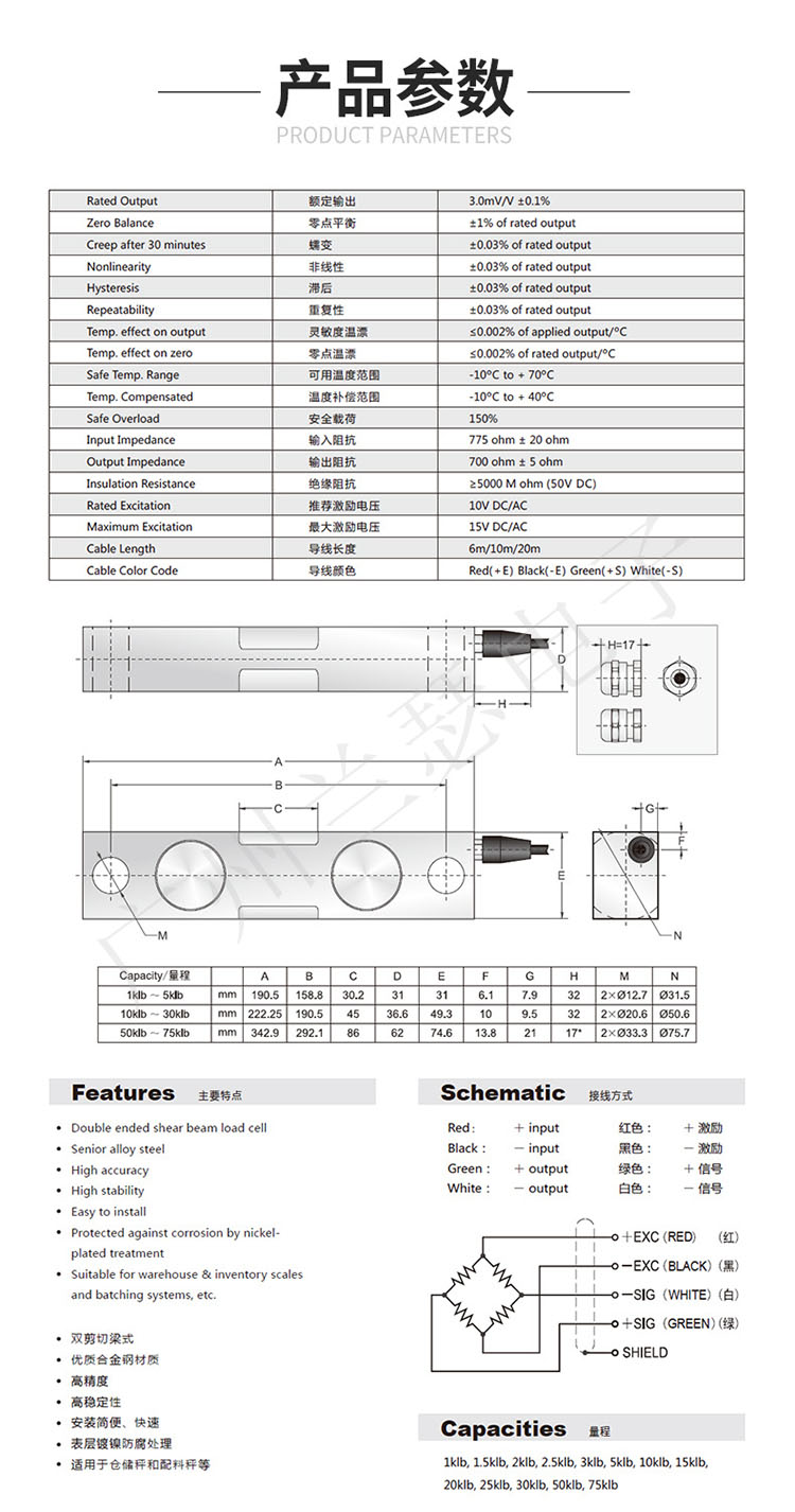 美國(guó)Transcell DBS稱重傳感器產(chǎn)品參數(shù):