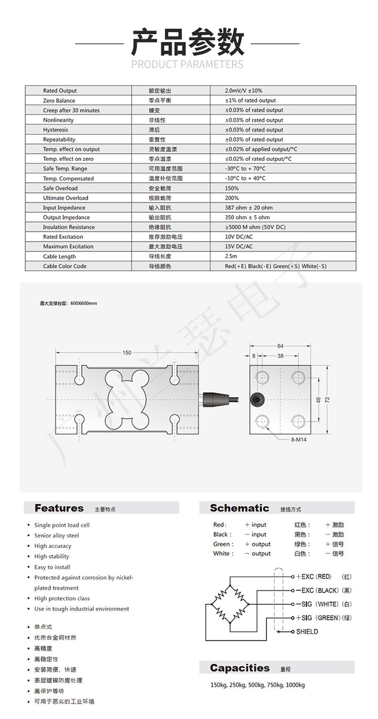 FSSV-750Kg 單點式傳感器,容量750kg