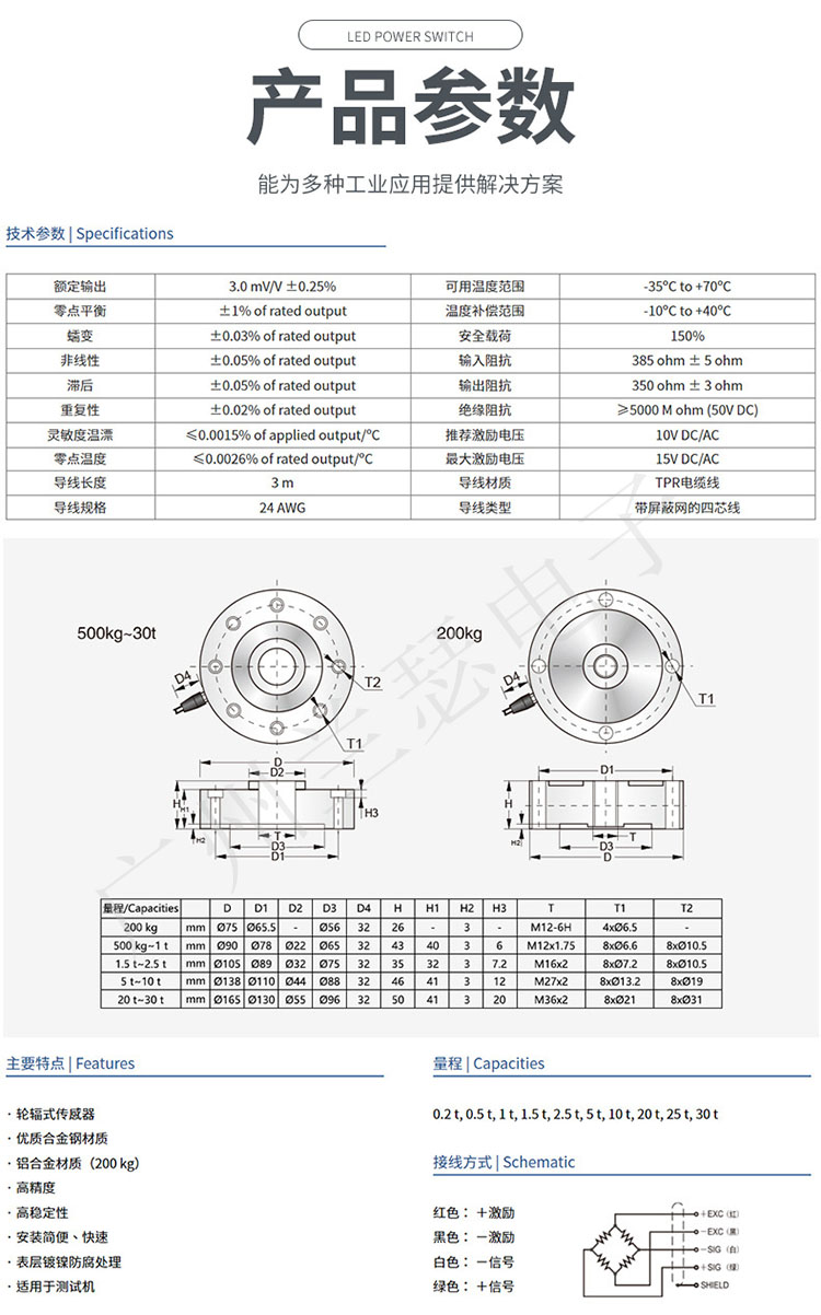 量程范圍:500Kg,1t,2t,5t,10t,20t,30t