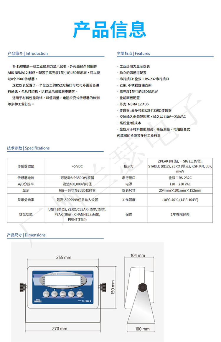 | TI-1500B稱重顯示儀表,美國Transcell傳力 |