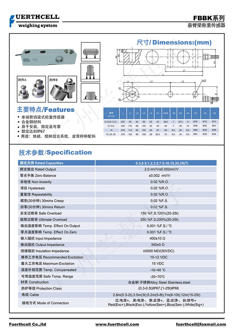 美國FUERTHCELL FBBK-1T稱重傳感器產(chǎn)品參數(shù):